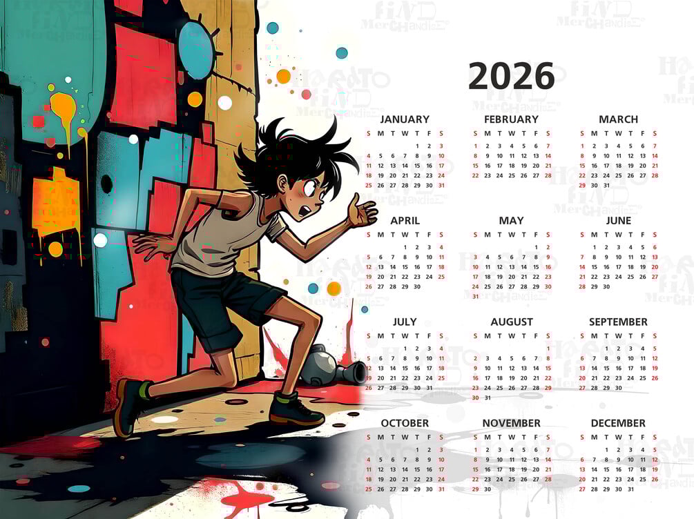 2026 A3 One-Page Graffiti Boy Wall Calendar — Original Creative Artwork by HTFM Instant Download