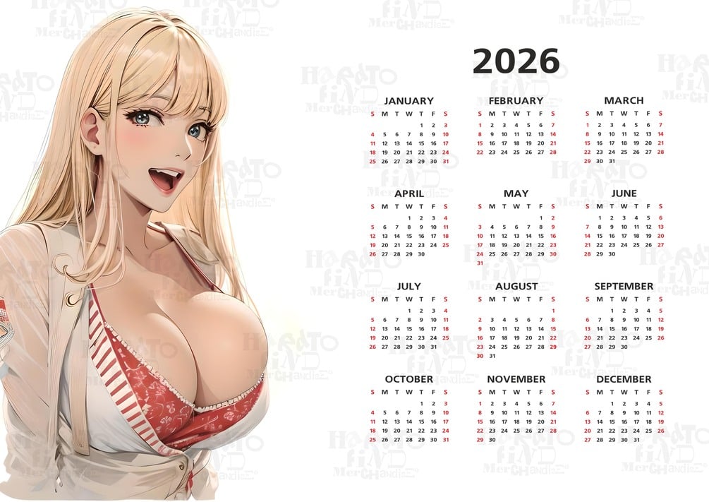 2026 One Page Calendar Printable A3 Wall Art Cute, Busty Manga, Anime Big Boob Blonde Instant Download