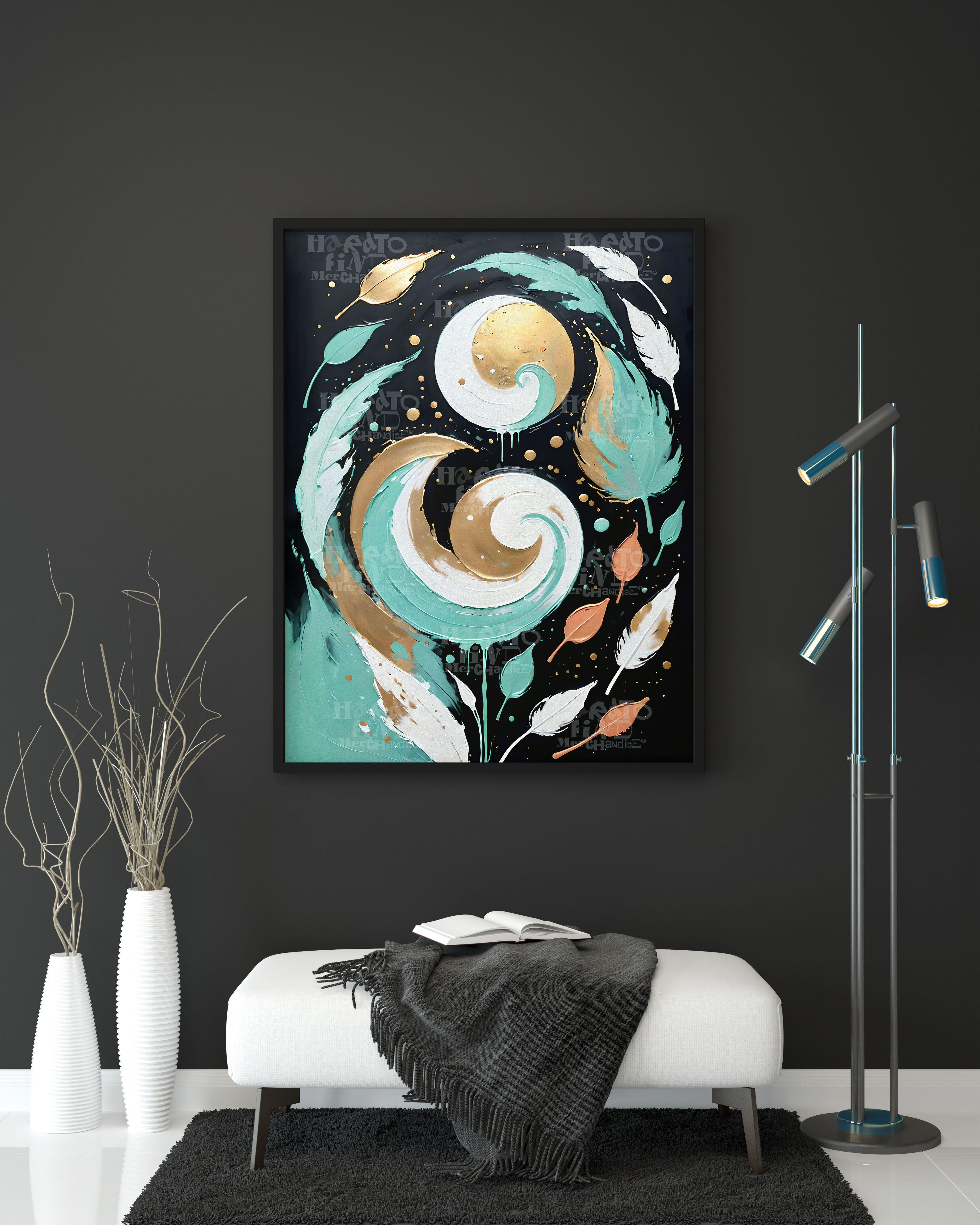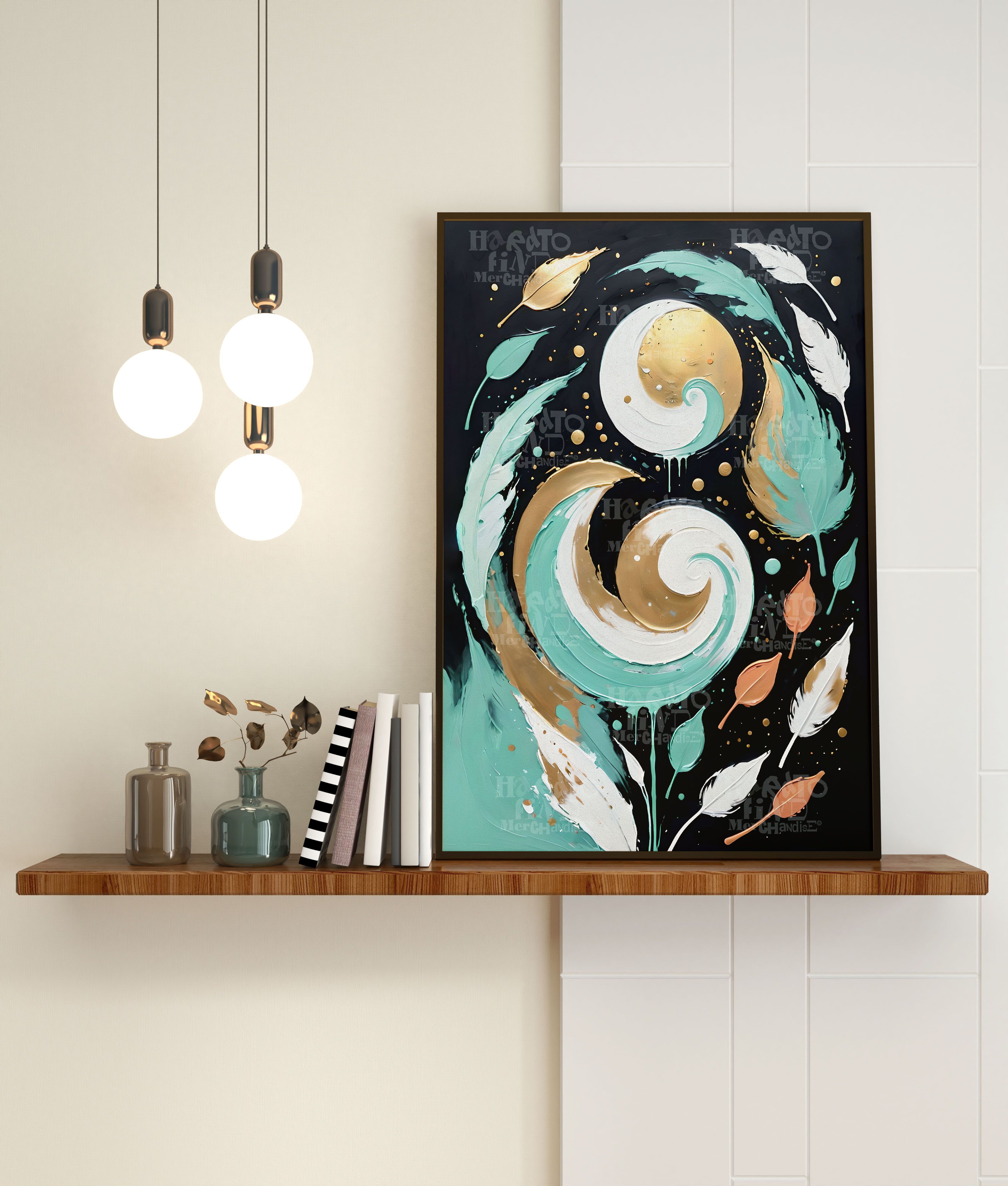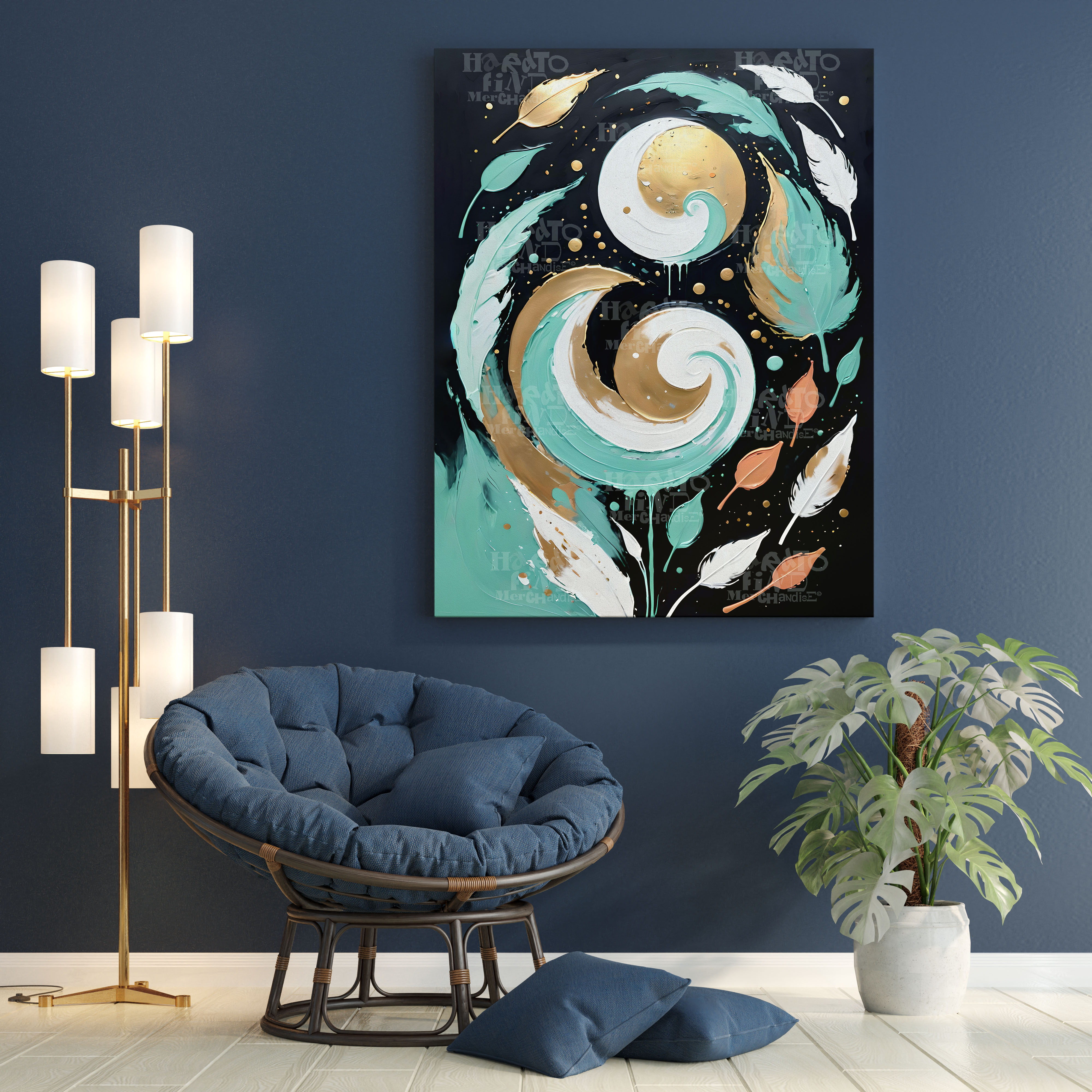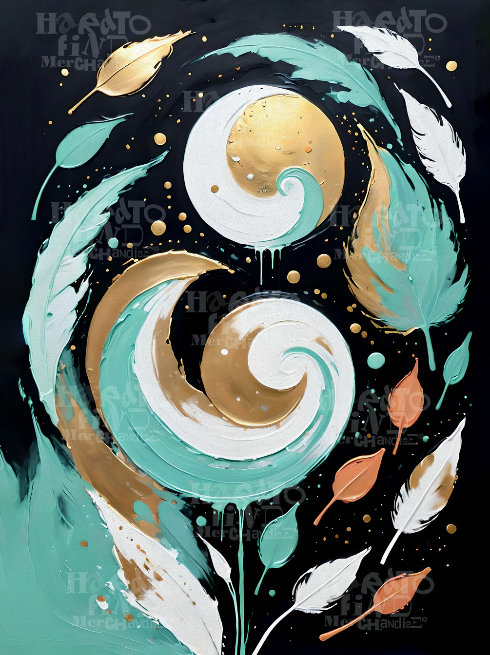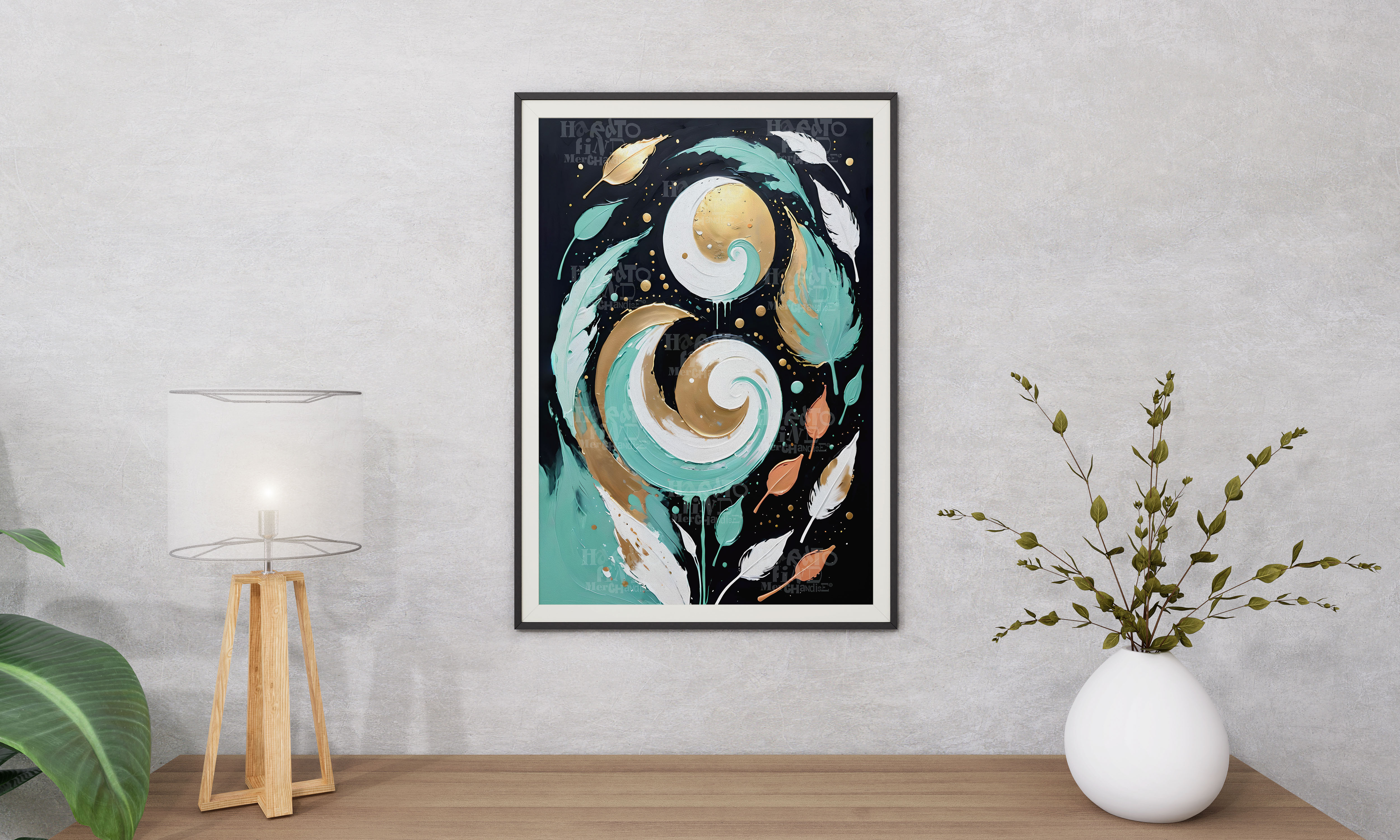 Botanical Abstract Textured Swirls Wall Art Digital Download. White, Gold Teal, Terracotta Boho