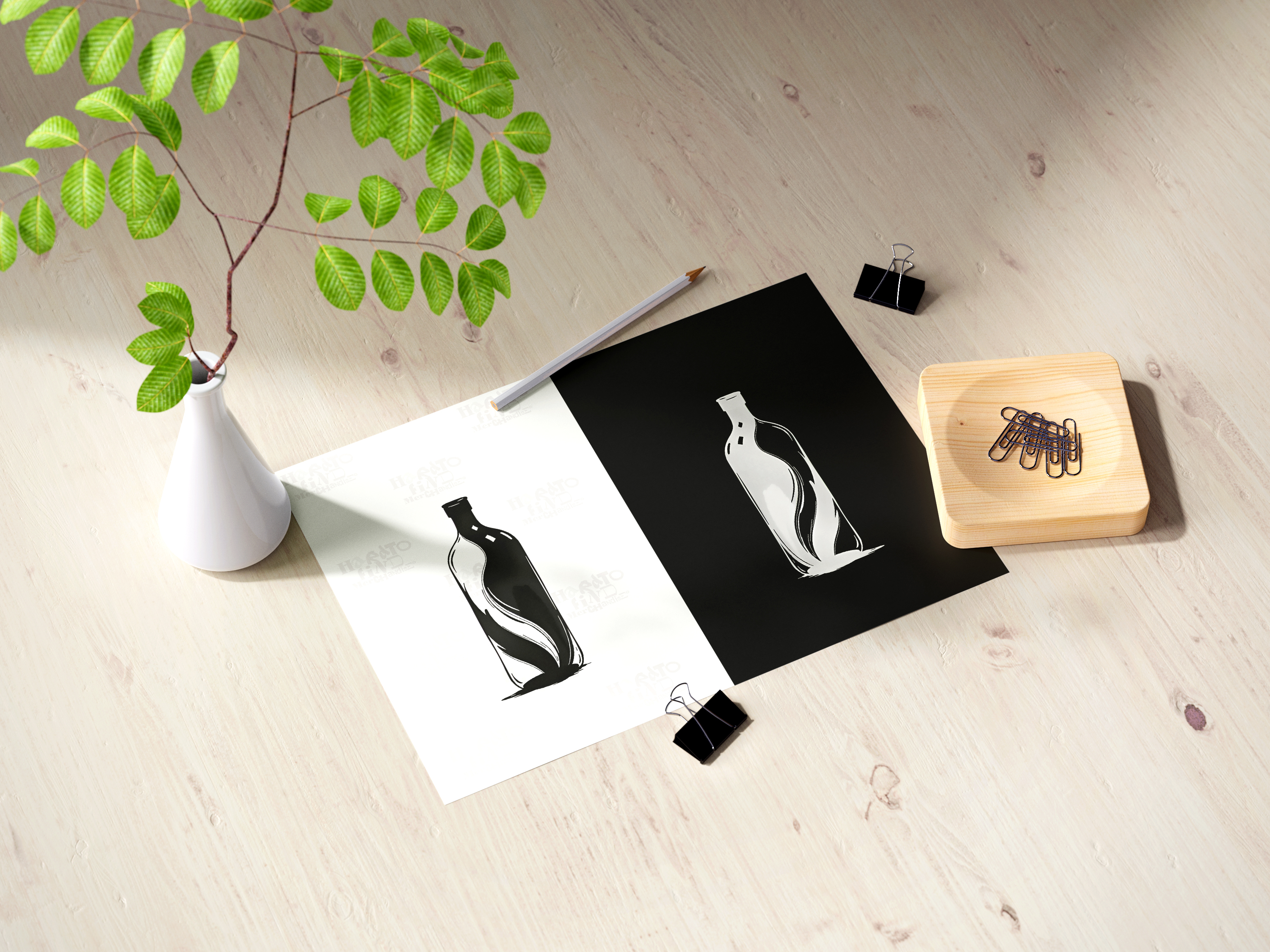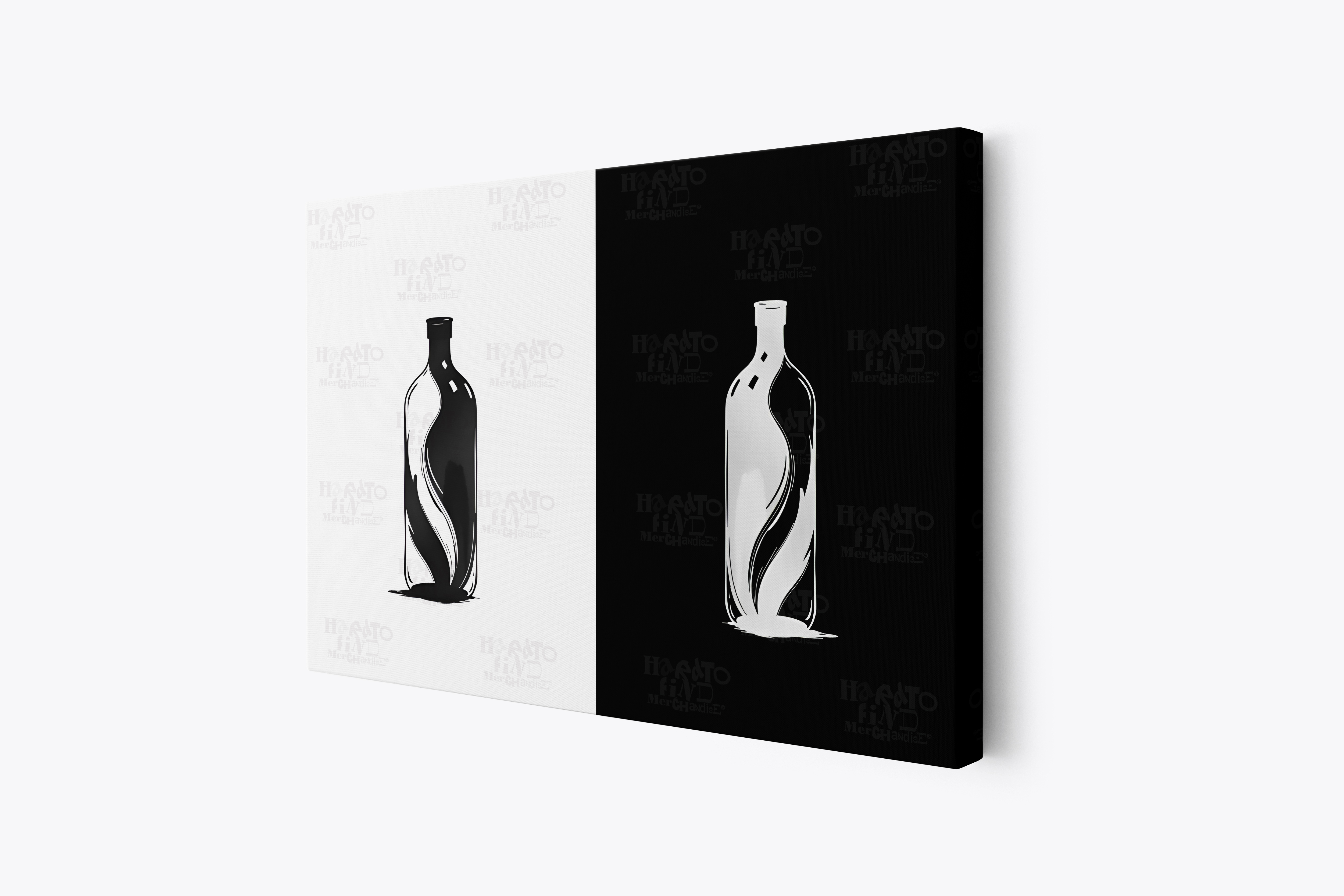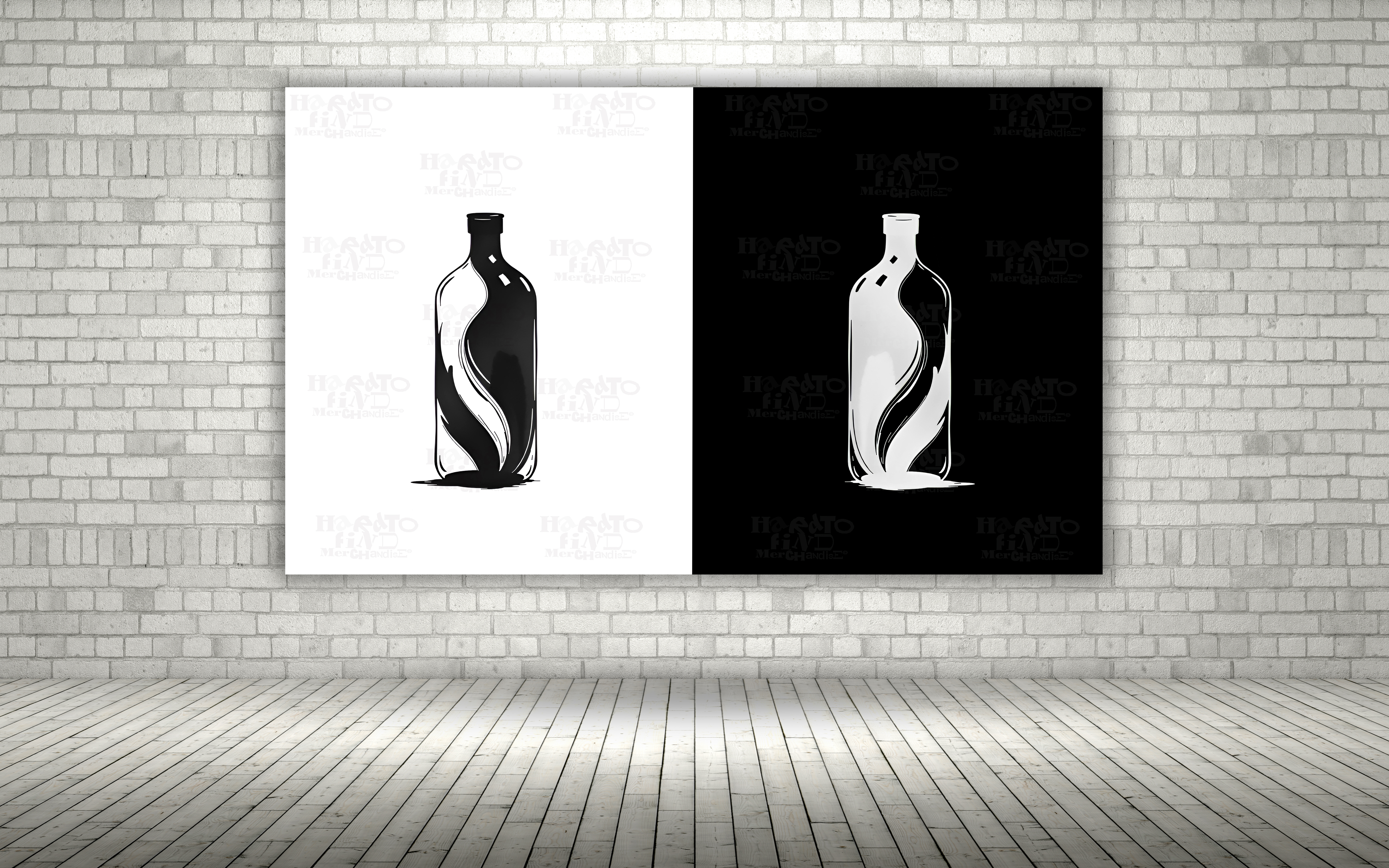 A minimalist bottle illustration expressed through flowing black and white forms, exploring balance, contrast, and quiet containment. Presented as a paired composition, the artwork reflects duality and simplicity through clean lines and negative space.
