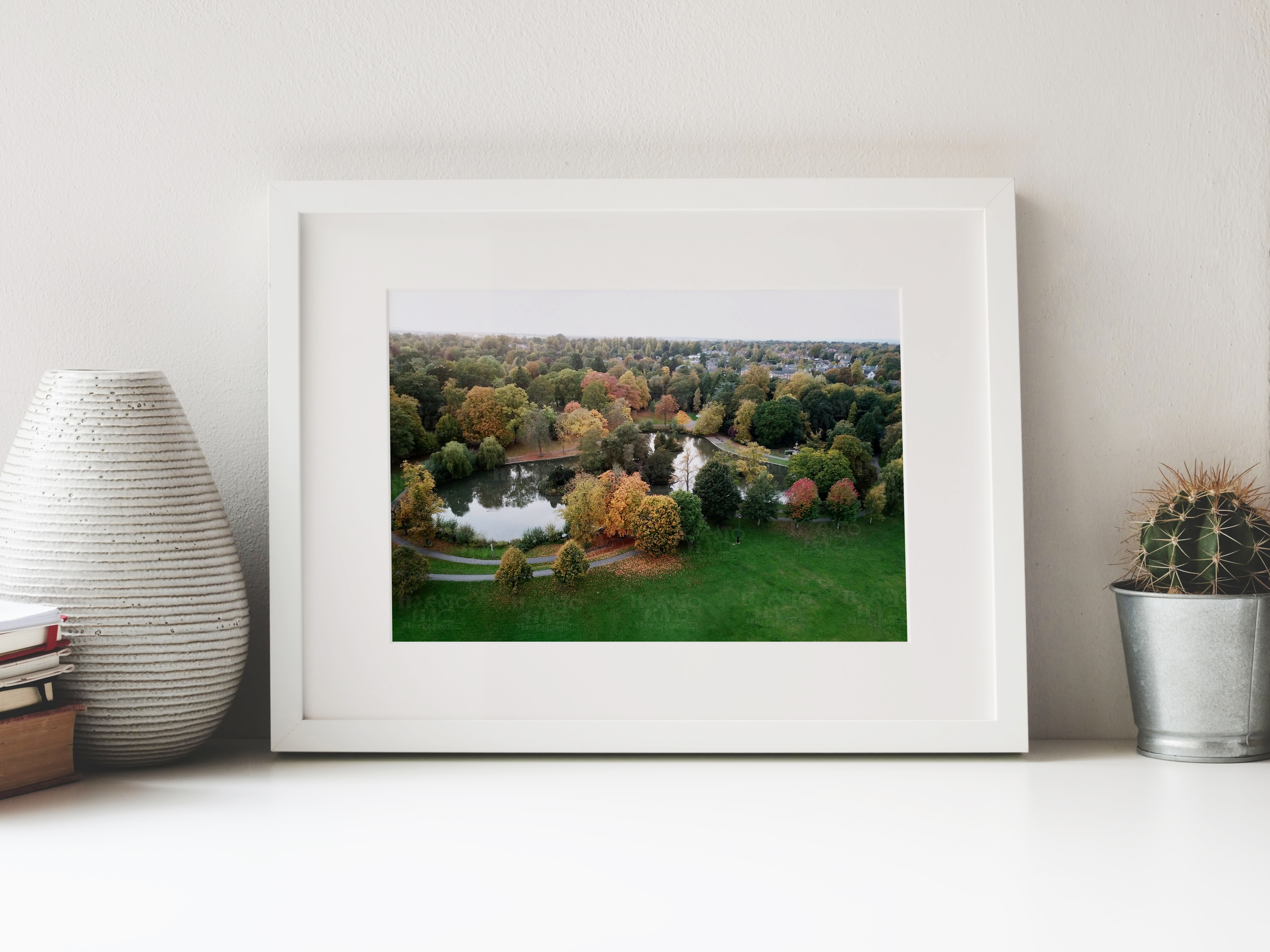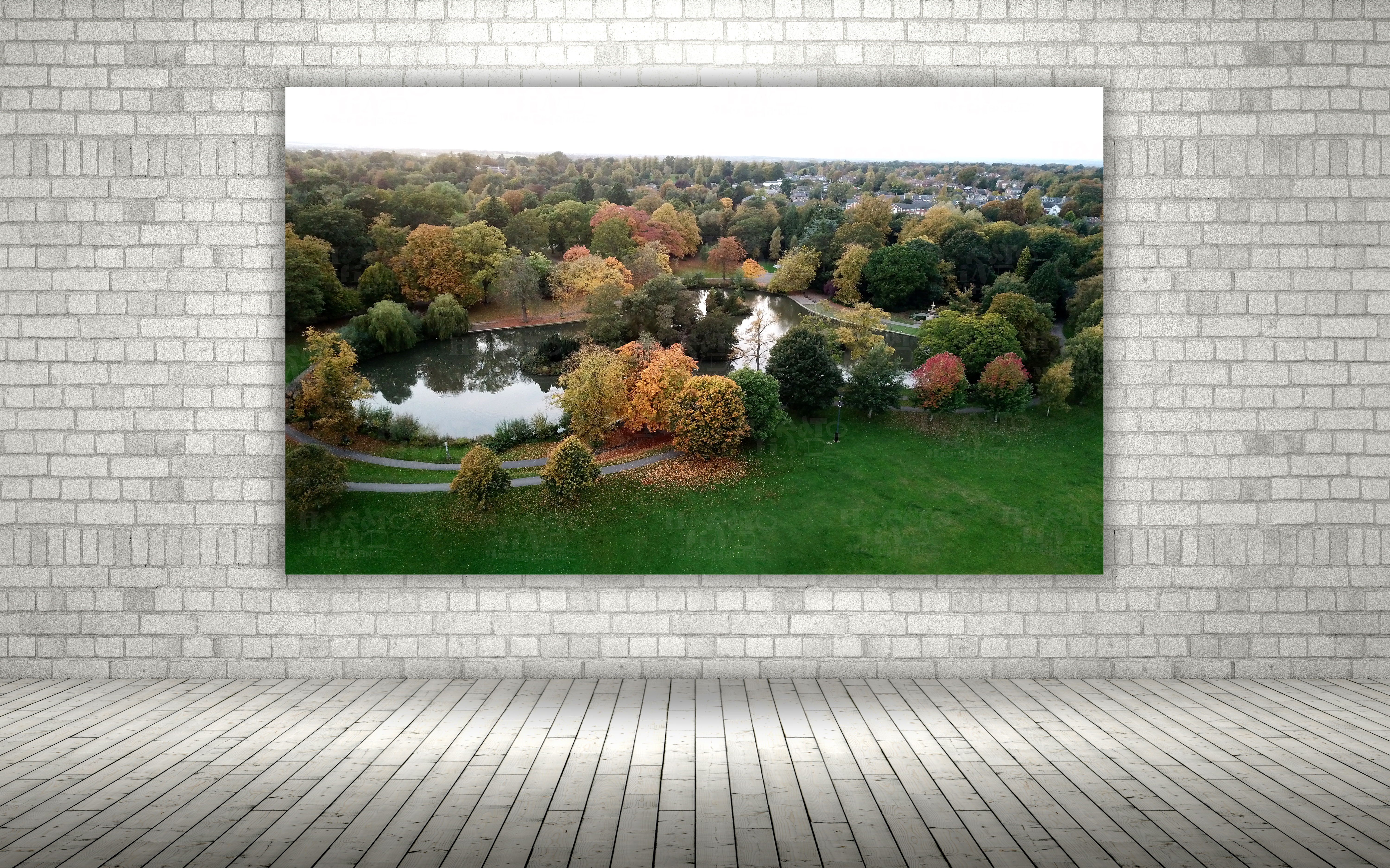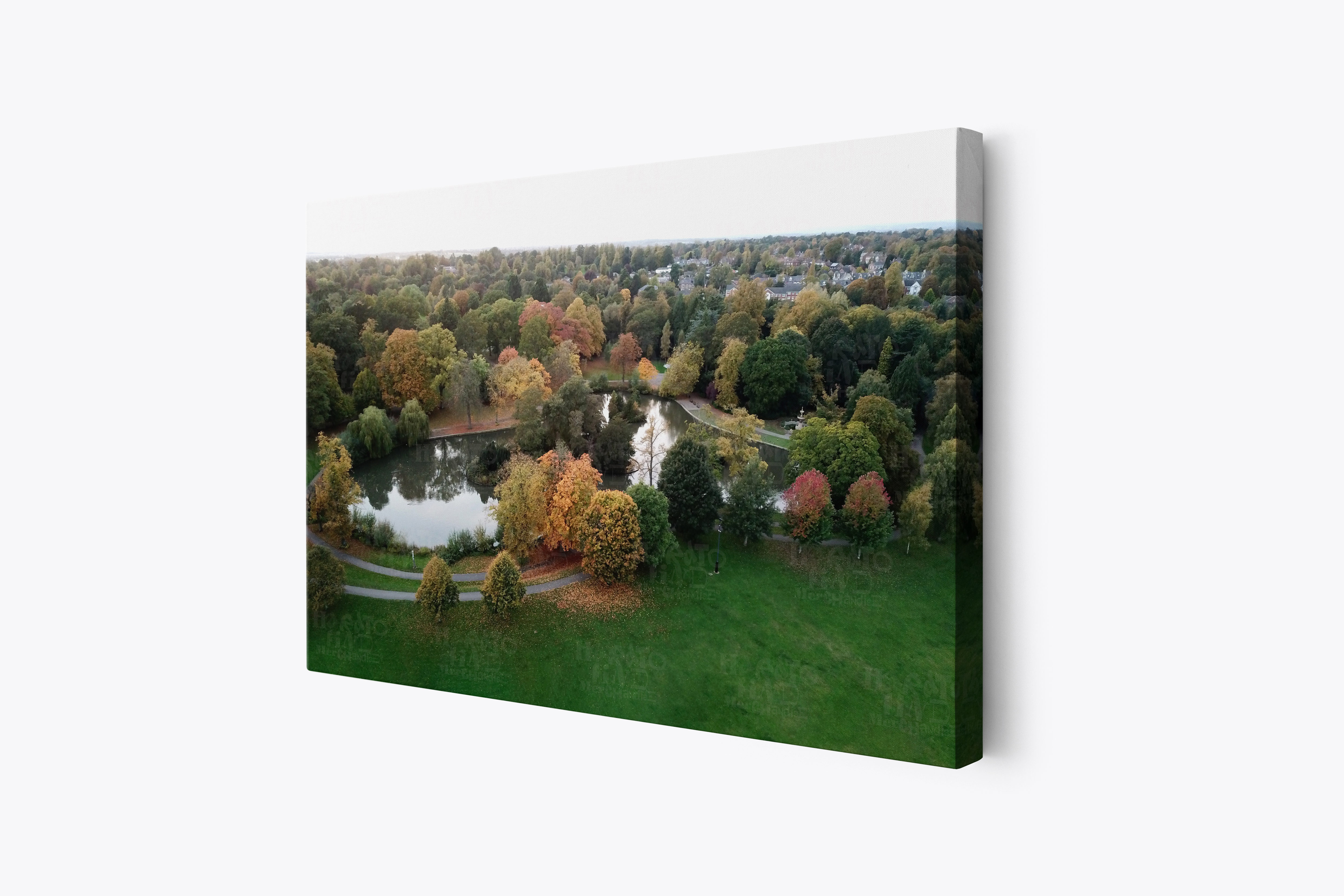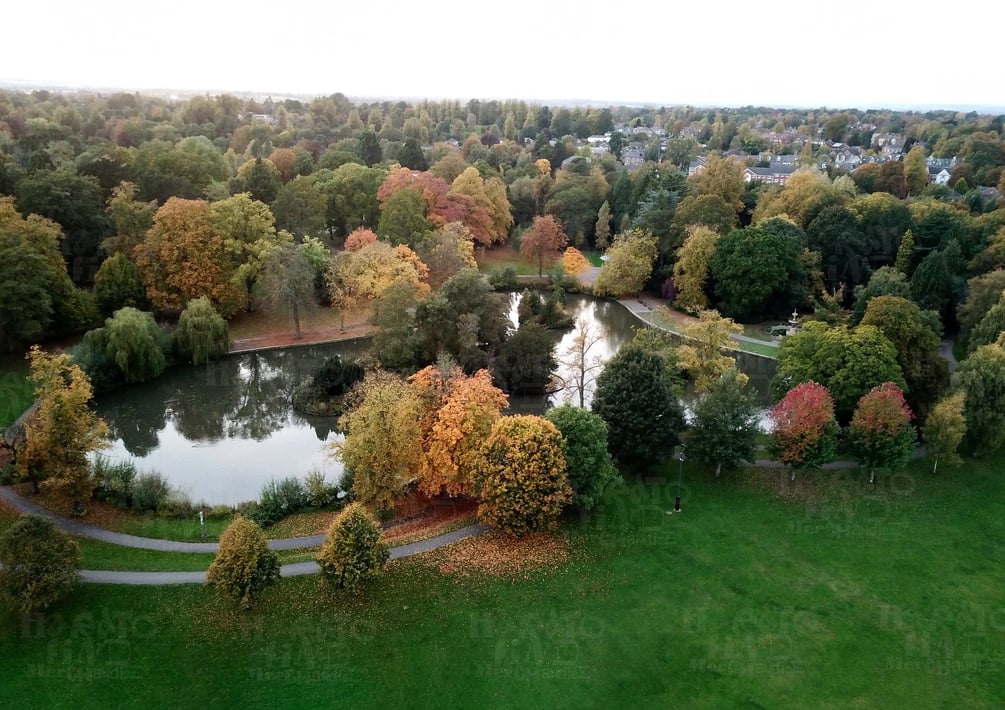 Autumn Calm at South Park Duck Pond Darlington Aerial View by HTFM Digital Wall Art
