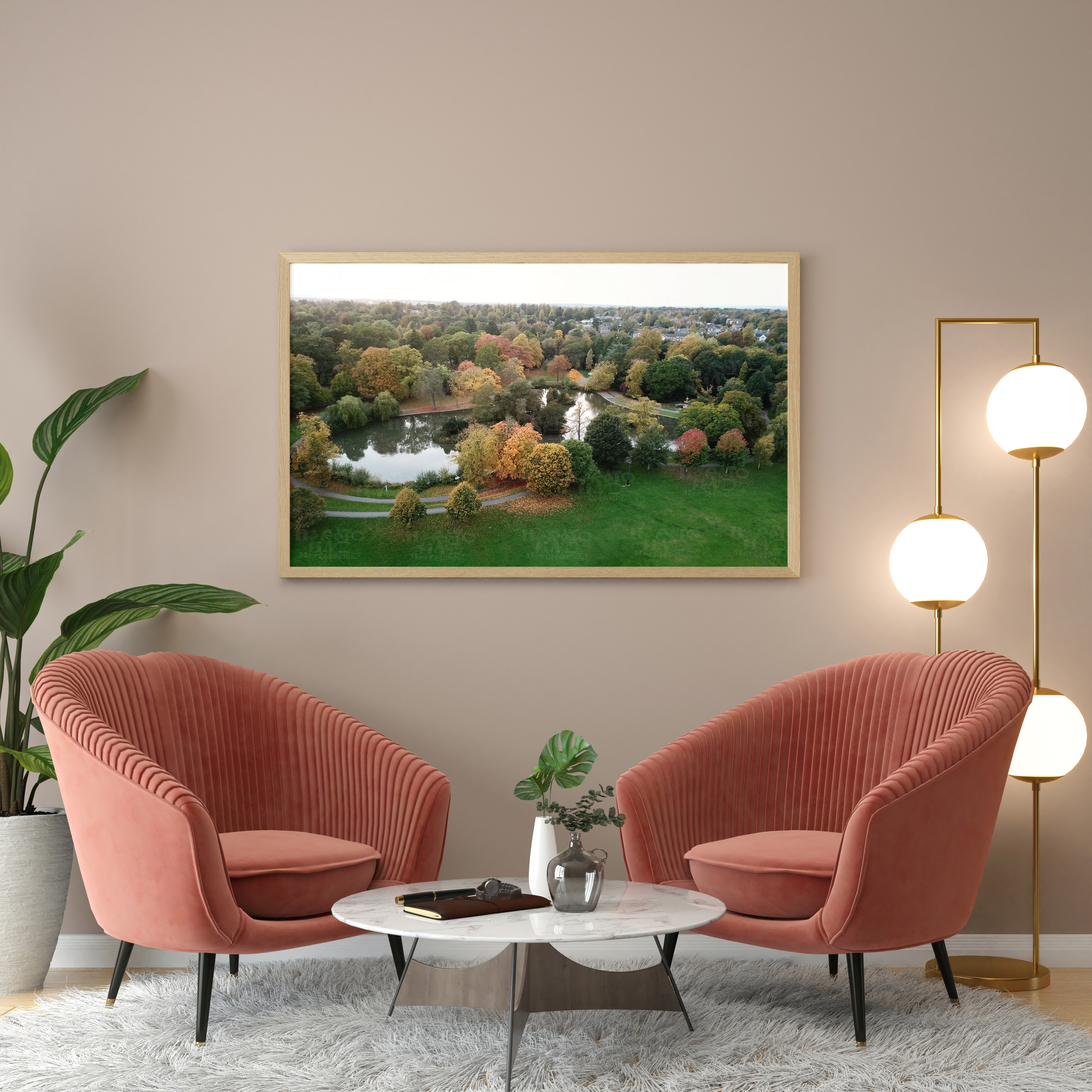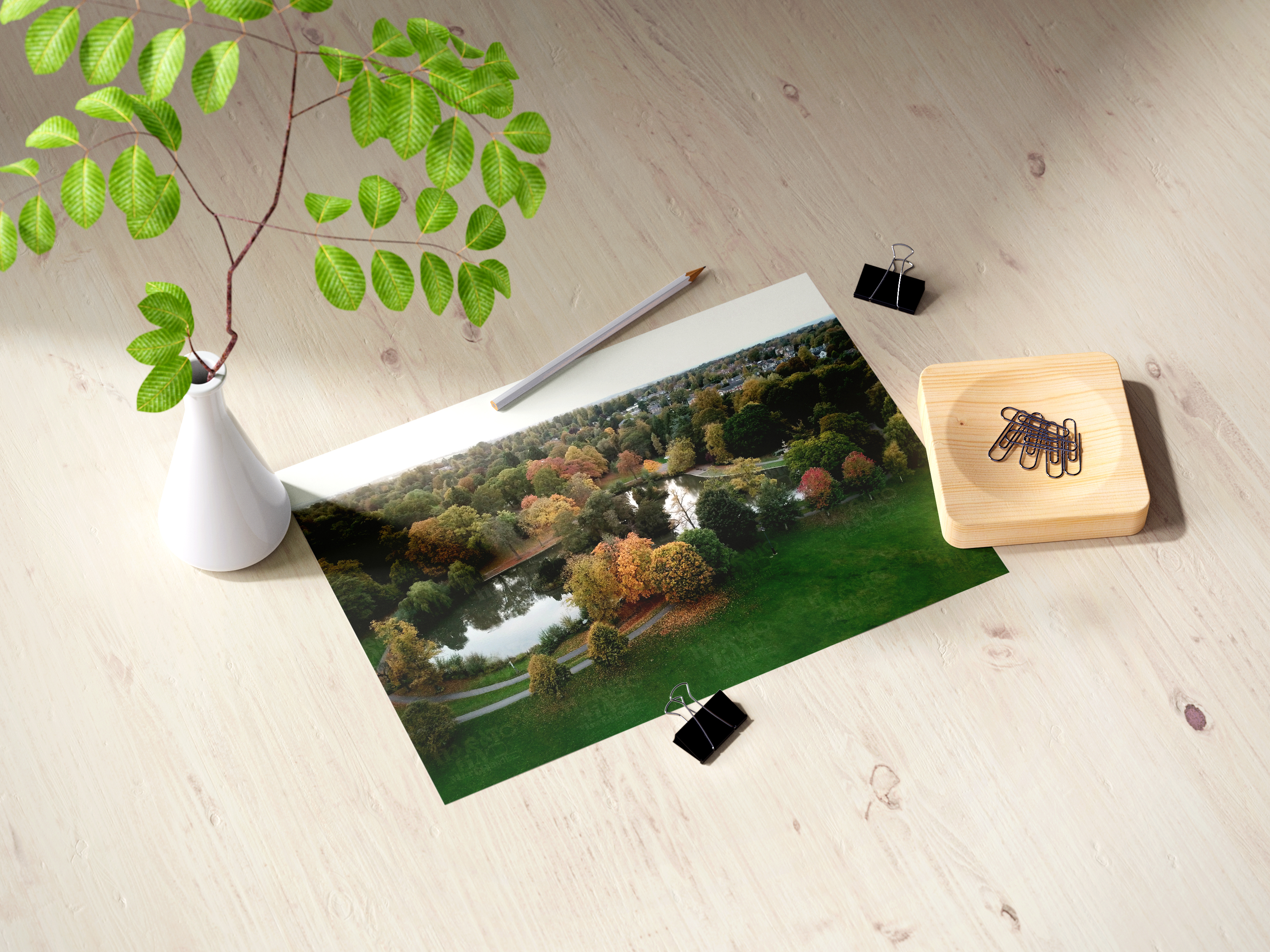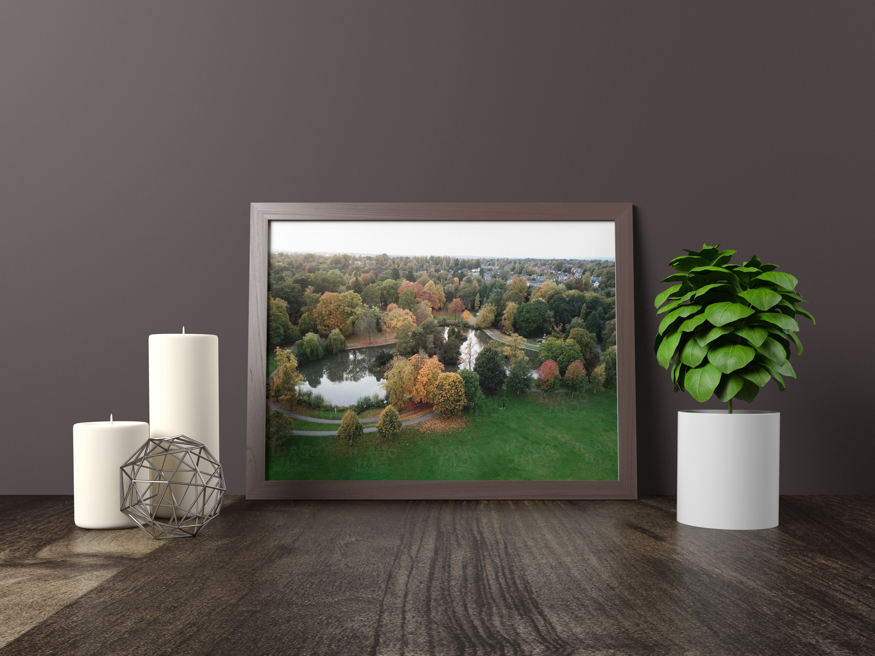 Autumn Calm at South Park Duck Pond Darlington Aerial View by HTFM Digital Wall Art