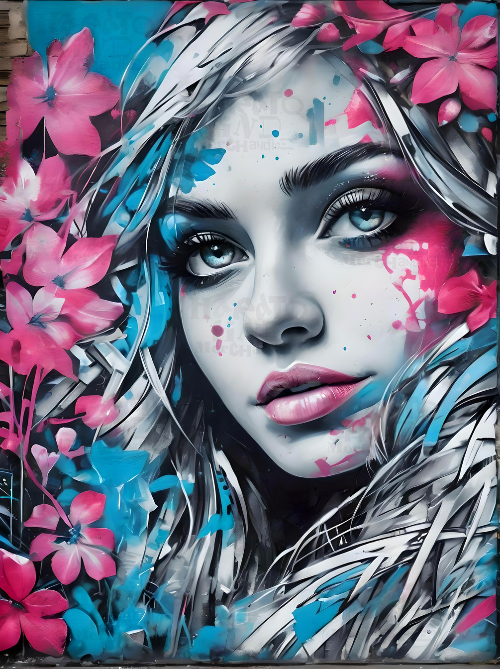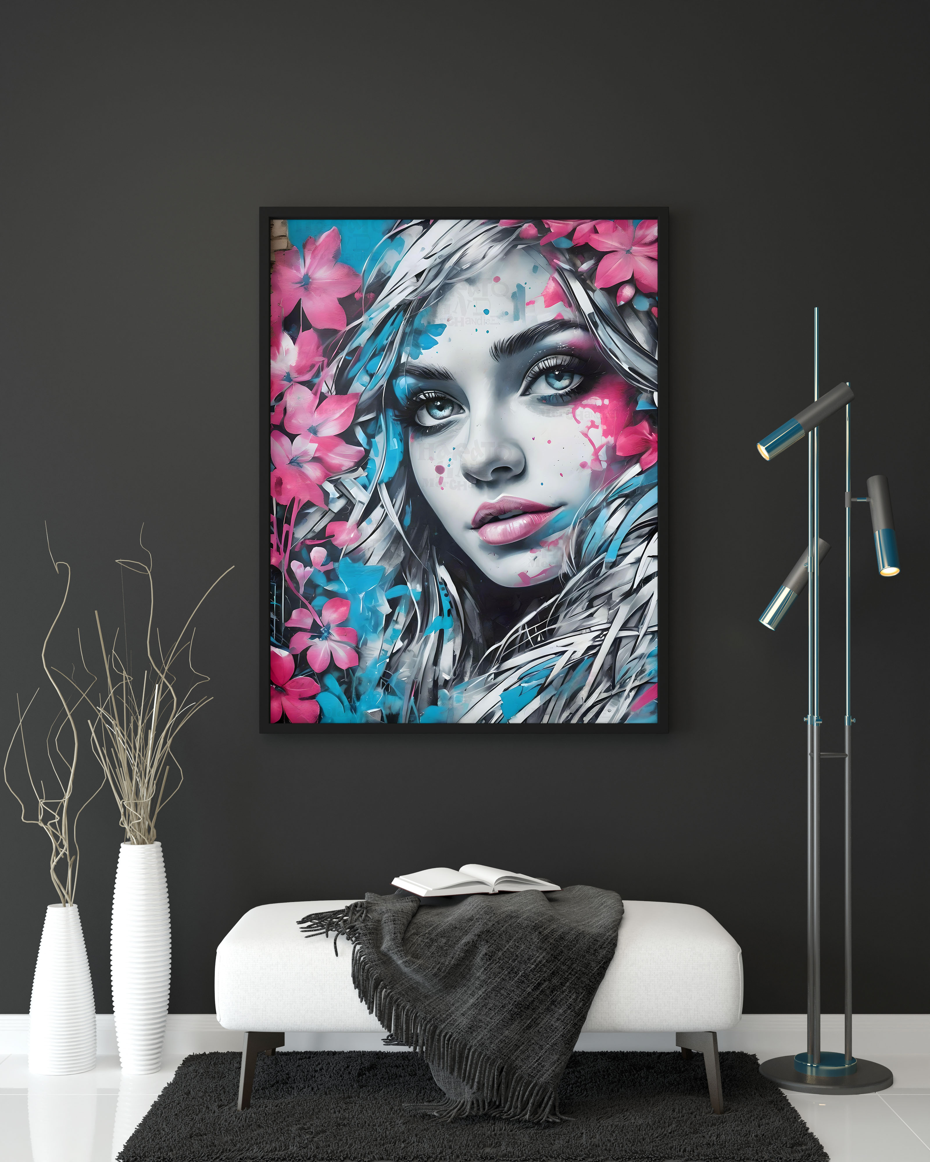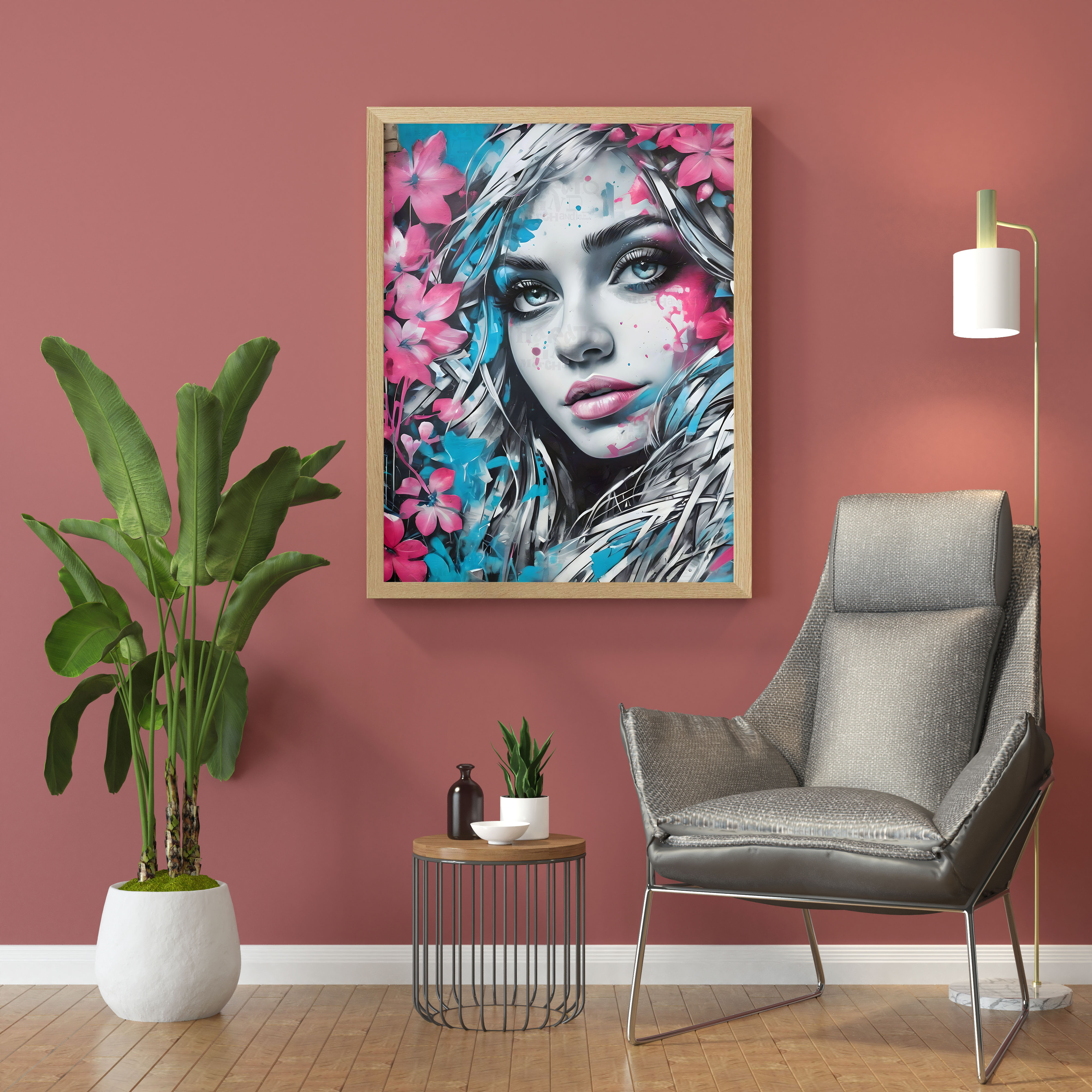 Dream in Bloom, Urban Flower Muse, Printable Digital Download, Floral Portrait,